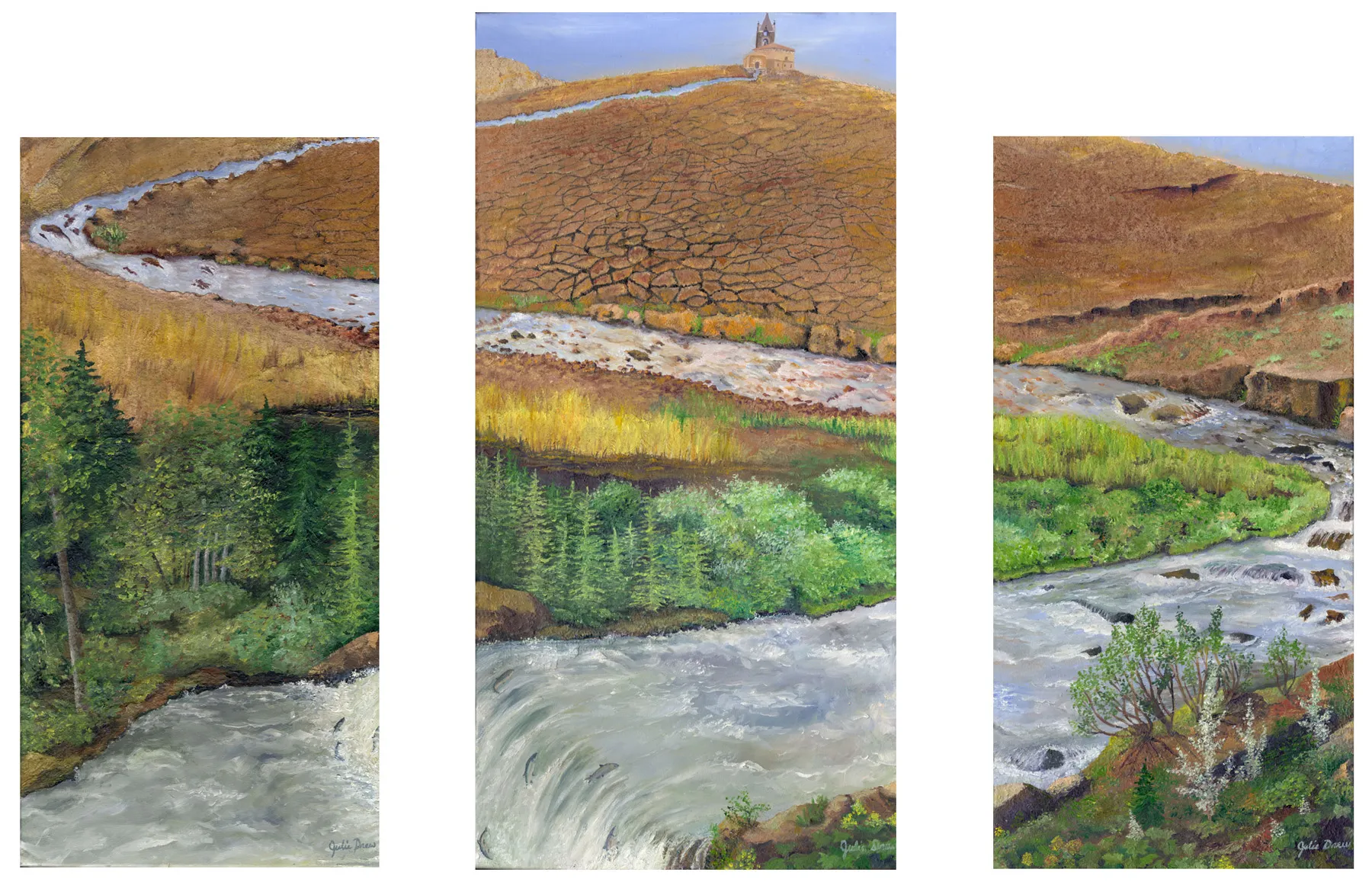 Julie Drew waits and listens, letting the details of the world around her speak beauty and wonder. Adding her own distinct expression using watercolor and mixed media to capture the depths and nuances of color, light, and shadow, she creates paintings that proclaim peace, mystery, and wonder.