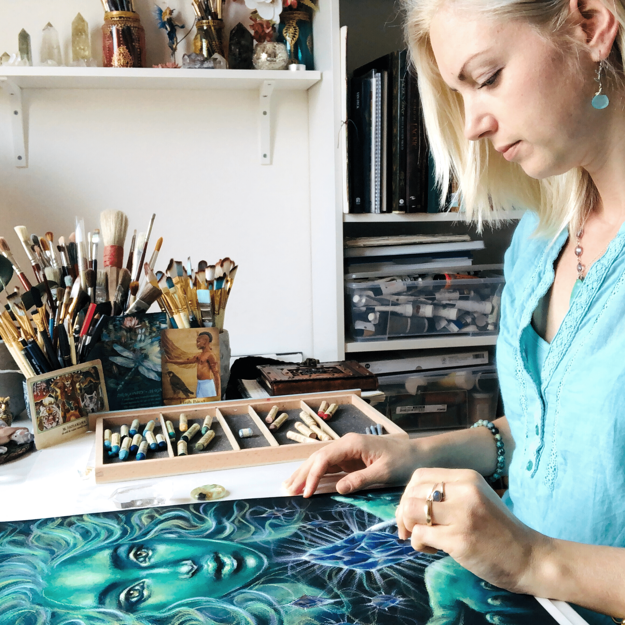 During our time together, Katrina will guide you through two main art projects inspired by magic, myths, and legends. We’ll be working with acrylics and oils, painting mystical and magical creatures while exploring personal symbolism, imagination, and intuitive creativity. Her teaching style is supportive, encouraging, and accessible, and all skill levels are welcome — whether you’re experienced or just beginning your creative journey.