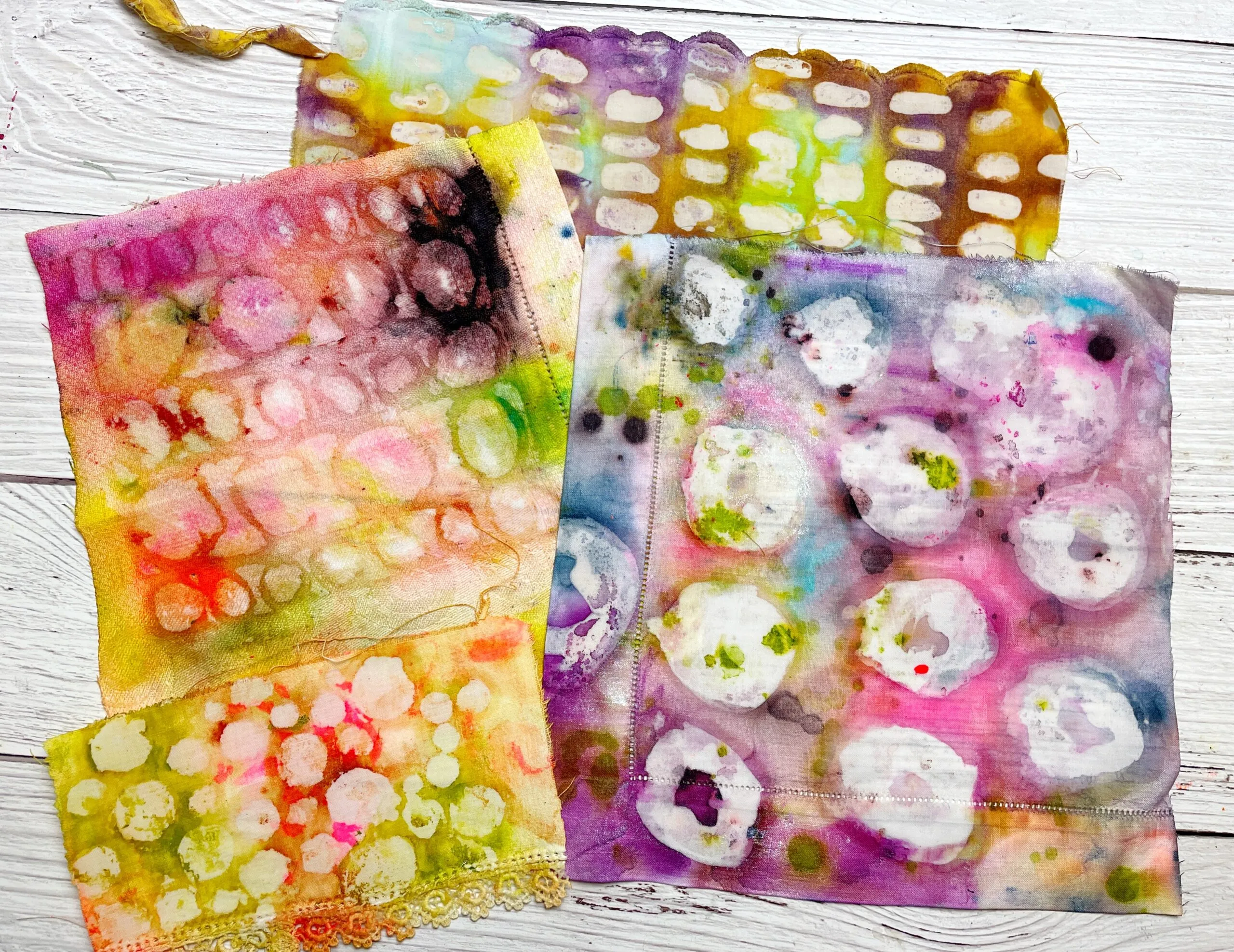 Learn easy methods for blending fabric and thread into your mixed media journals. You’ll also experience Roben-Marie’s signature beeswax technique—the one that has everyone at her retreats crowding around the slow cooker, laughing and creating the most beautiful, unique patterns on fabric. (Fair warning: this technique is so addictive, you might find yourself asking “Is the wax ready?” more times than you can count!)