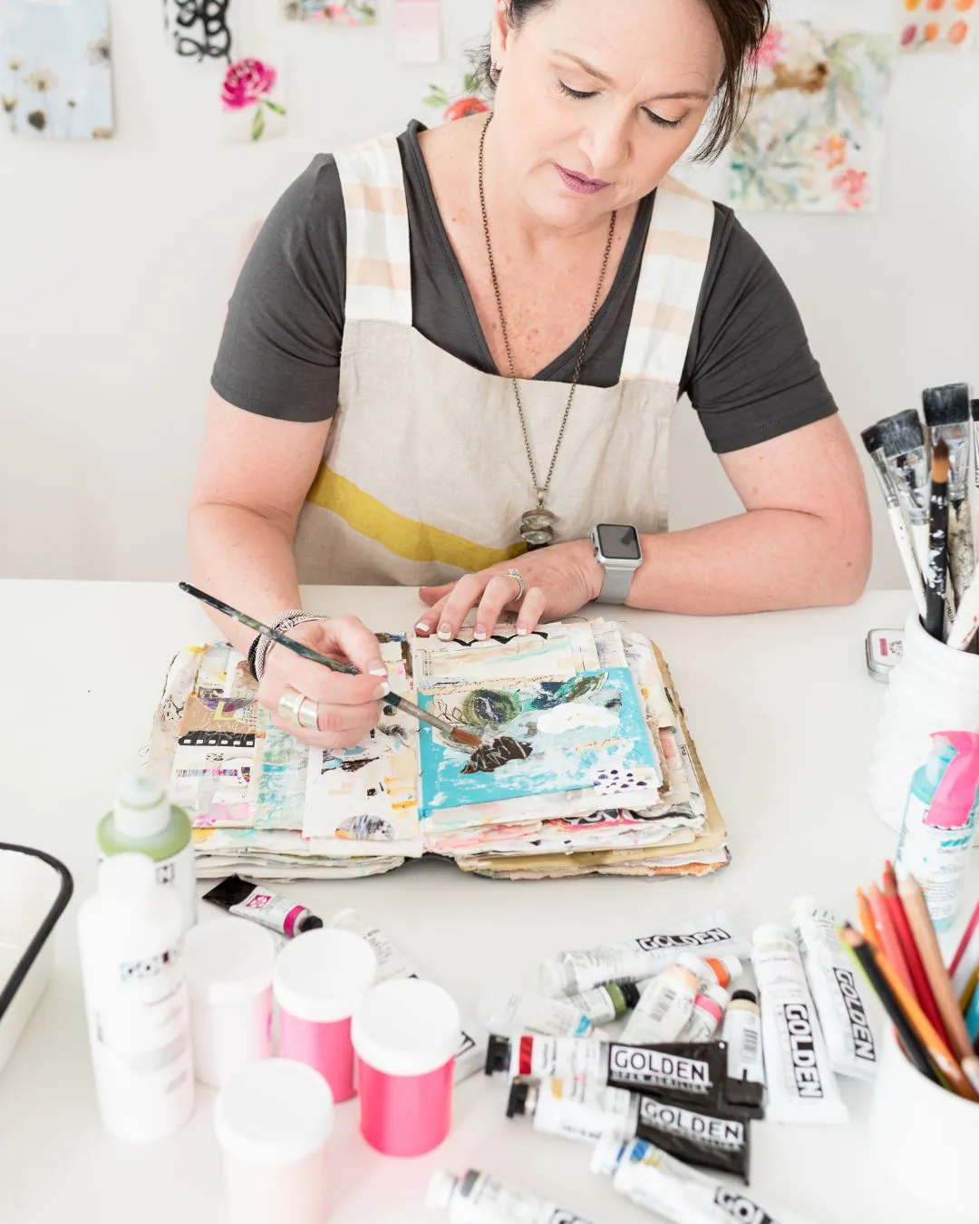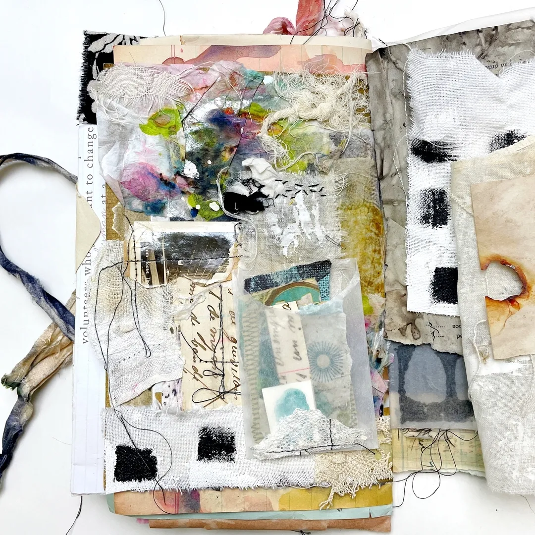 Dive into Roben-Marie’s favorite mark-making techniques using neutrals, bold colors, and unexpected tools. We’ll explore various mediums to create a treasure trove of painted artist papers that will become the foundation for our book creations and future projects, including the popular “paint and pass” sessions where you’ll create beautiful collaborative papers with your fellow retreat-mates.